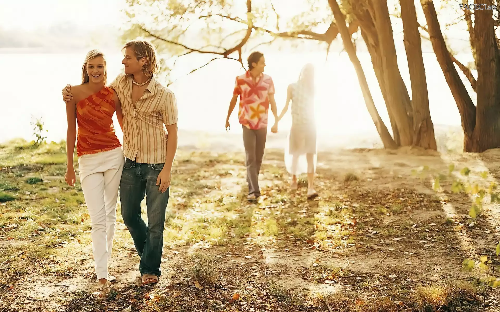 Drzewa, Pary, Spacer, Miłość, Zakochane - faceci.biz